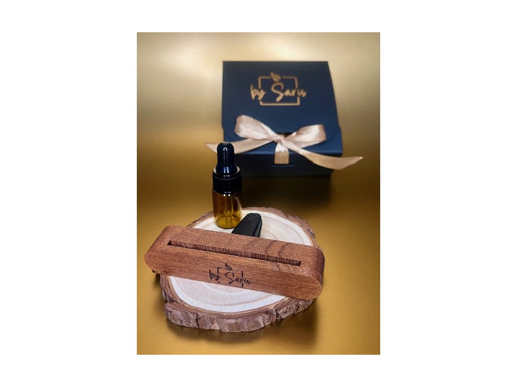 Použití: Odstraňte dřevěný kryt s logem a na bílou tyčinku nakapejte pár kapek vonné esence z lahvičky, poté upevněte zpět kryt, který drží díky magnetu. Teď už stačí difuzér díky otočnému klipu vsunout do ventilace a vychutnat si vůni. Balení obsahuje i náhradní tyčinku, na kterou si můžete nakapat vaši oblíbenou vůni, například esenciální olej.